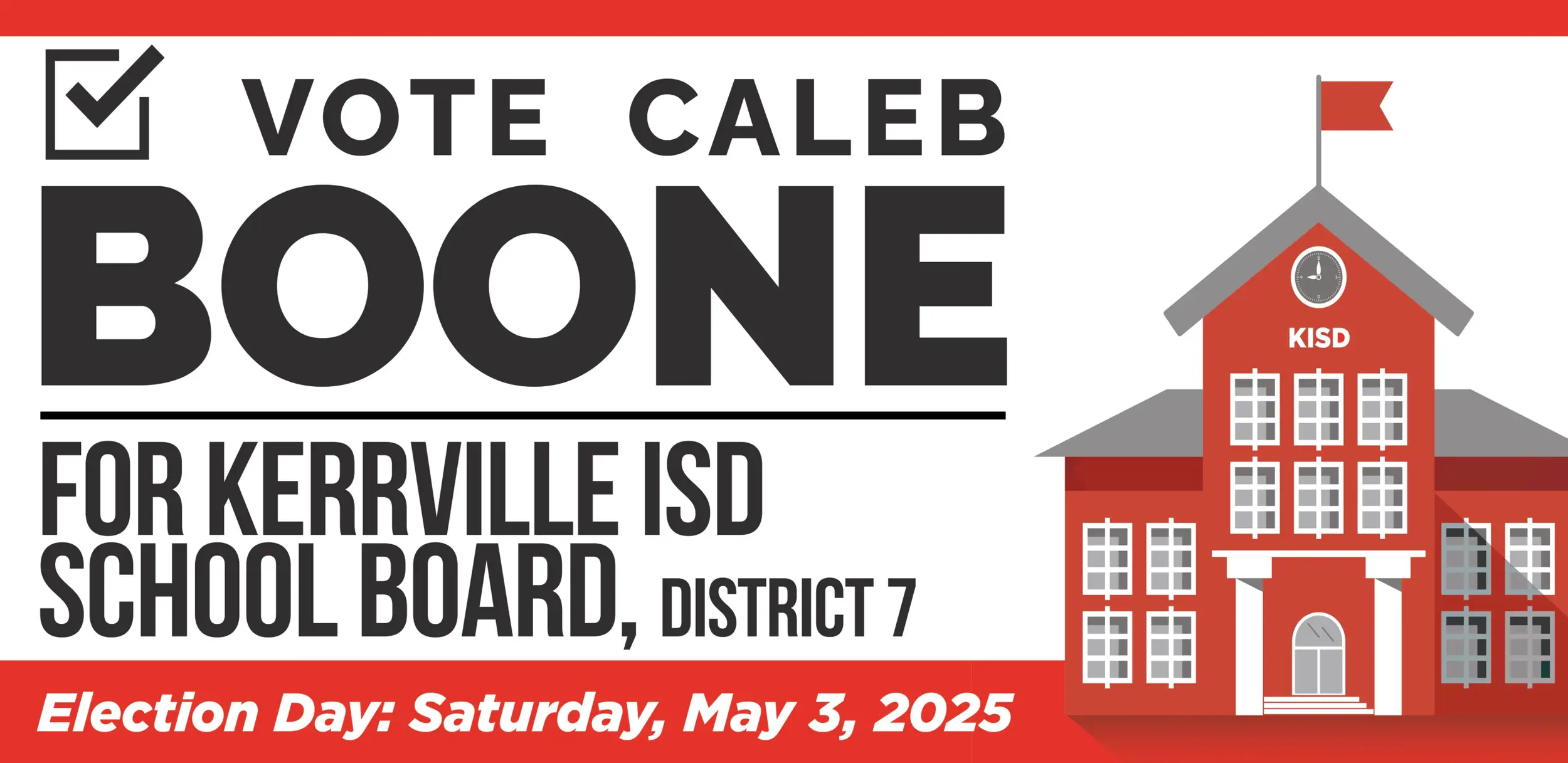 " I was born in Pasadena, TX and moved to Kerrville when I was six years old with my family. I am one of 4 kids. My parents are Dr. Dan and Rhea Boone, who practiced medicine in town until retirement. My parents got called to the mission field when I was in 5th grade and we moved to Nigeria, Africa for 4 years. When our tenure was over, we moved back to Kerrville and I graduated from Tivy High School in 2004. After high school, I attended college at Dallas Baptist University and graduated in 2008. I met my wife at DBU and have been married since 2009. We moved back to Kerrville for work in 2010 and we have been here ever since. My wife, Brittany, enjoys volunteering on the PTO, for Teacher Appreciation at Hal Peterson Middle School, and is the VP of Fundraising for Tally Elementary. We are blessed to have 4 boys; Brayden (8th), Braxton (6th), Bradley (4th), and Beckett (Pre-K). All of which will be in all 3 levels of KISD next year and all are involved in many extracurricular activities and club sports."